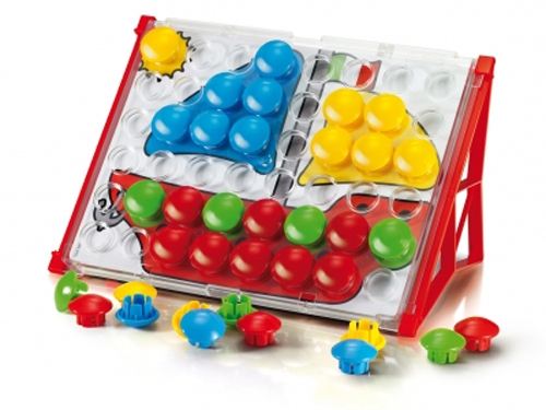 This is a brand new toy which allows you to create lovely designs with large coloured buttons. The transparent pegboard is round with supporting rack for the picture cards. It is a fun and educational game that encourages creative ability whilst developing colour and shape perception.
