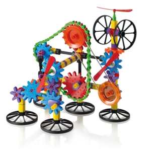 With the Georello building system, children can learn simple mechanical principles whilst having fun. They can build a simple structure then add the connectors to connect up the gears. At the end of the building process everything is set into motion by turning the handle, with a spectacular chain reaction. Each gear is decorated with a different design that stimulates colour perception and creativity.