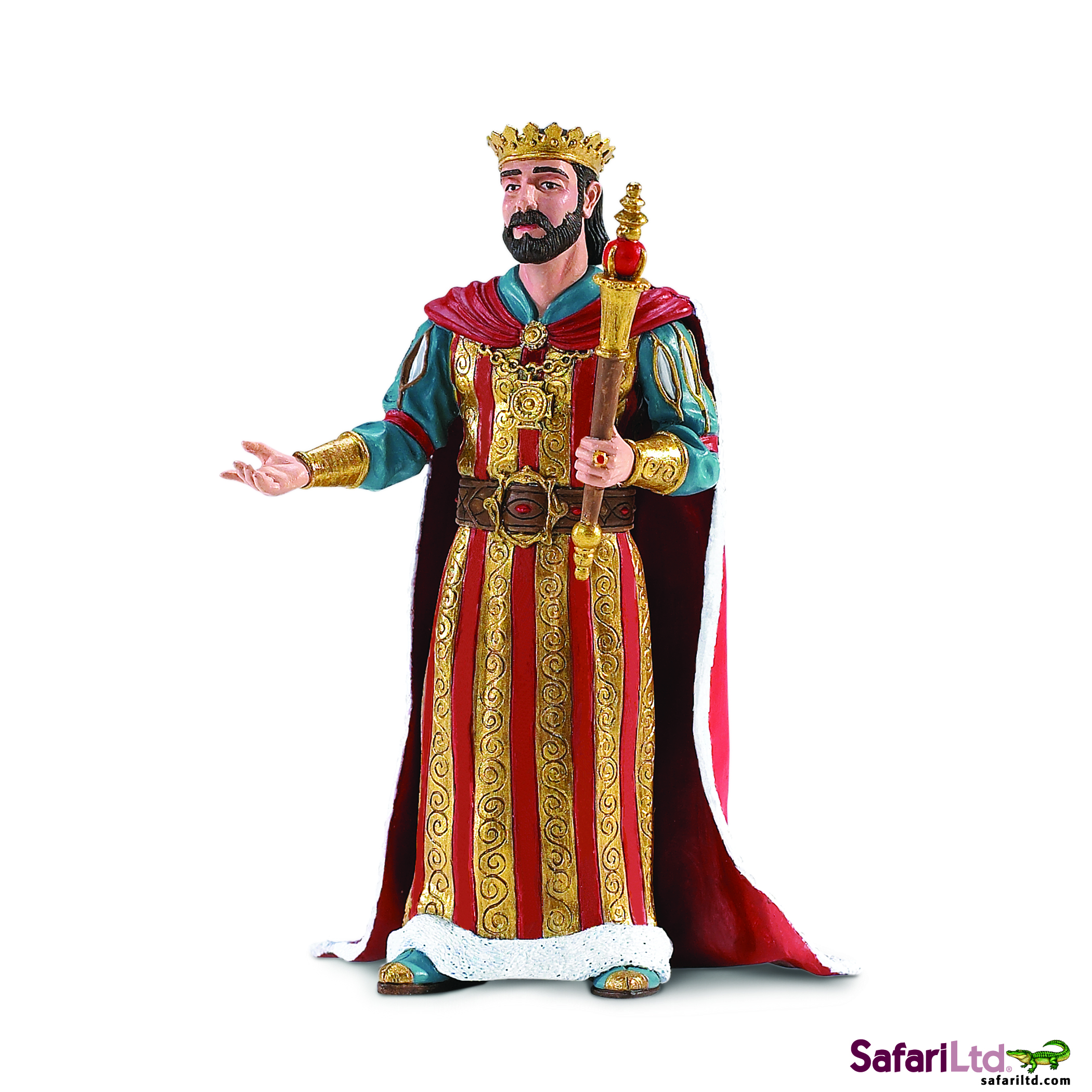 King Alfred raises his royal scepter in an act of benevolence toward one of his subjects. Relive the age of castles, when Kings and Queens ruled from their thrones, and Witches and Wizards plotted in the shadows. The Safari Ltd® Days of Old® collection captures the elegance of a royal court, all in stunning detail, at sizes perfect for children’s hands. Our professional sculptors have focused on everything from facial details to flowing robes in this collection, and each toy is individually hand painted. Long live the King!