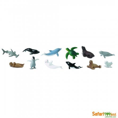 They may look cuddly, but it’s hard catching up with the speedy newborns in our Baby Sealife TOOB®. Safari Ltd® TOOBS® are collections of individually hand painted miniature replicas featuring vibrant colors, fine, professional sculpting, and accurate detail. They are available in dozens of themes, and each set comes in a reusable acetate tube that snaps open and closed for easy storage. The tube also has a spinning globe on its cap. TOOBS® are perfect for educational projects, traveling, collecting, and imaginative play. The Baby Sealife TOOB® contains twelve adorable toys, including: