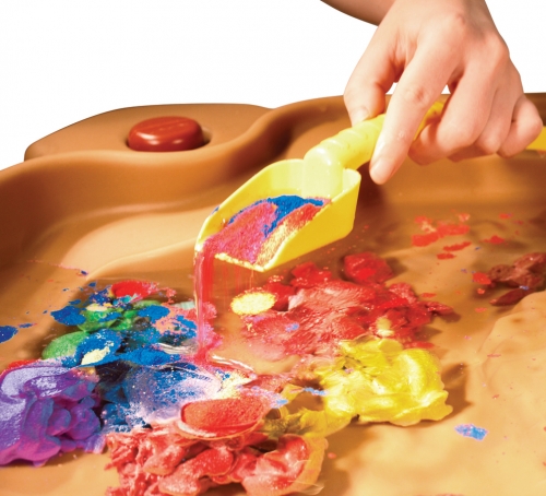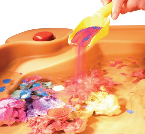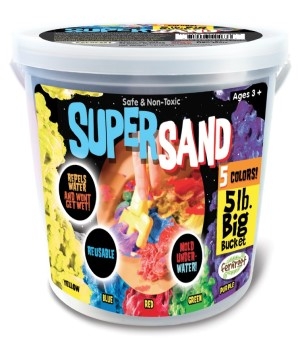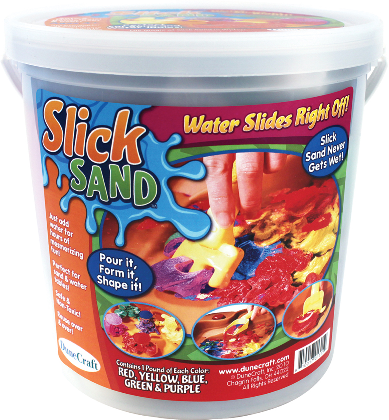 Super Sand is great for sand and water tables and makes for hours of fun! Super Sand will not get wet! So when you pour water on it, the water will stay on top and flow, instead of wetting the sand and sinking down as happens with ordinary play sand. It is great to create moats and canals with. Once kids have Super Sand on their tables, they won't settle for anything less! Slick Sand is safe and non-toxic.