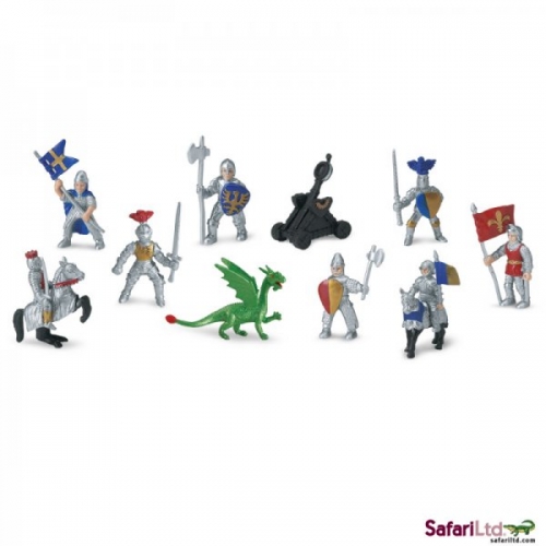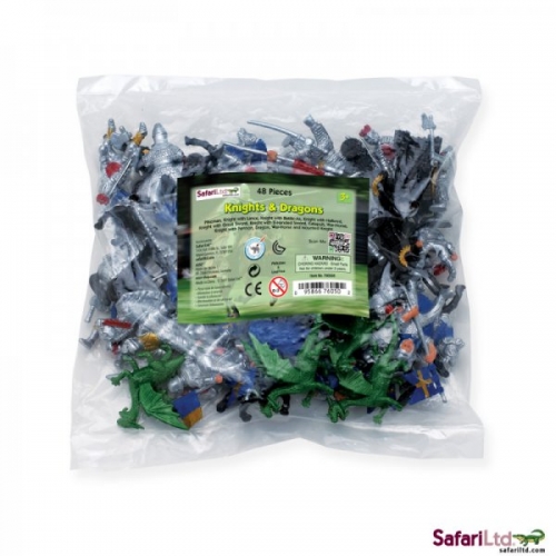 You can almost hear the clank of armour and clash of swords in the Knights and Dragons Bulk Bag. Can’t get enough of Safari Ltd® TOOBS® replicas? Bulk Bags feature our most popular TOOBS® figures in 48-piece bags. These individually hand painted miniature replicas are characterised by vibrant colours and accurate detail. Now you can share the fun with more friends! Plus Bulk Bags are perfect for classroom projects. This bag contains many knights from each of two kingdoms, along with catapults and green, winged dragons.