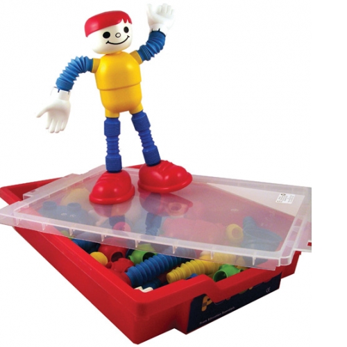 Popoids is the unique flexible building system which links heads, wheels, bodies and shapes to bendy, popping bellows. It can be easily manipulated by children who find the popoids great fun and love to extend the bellows to hear the fantastic noise they make.
